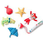 Con nuestro divertido juego de pesca, tu pequeño estará feliz como pez en el agua. Observa cómo sus habilidades motrices finas se desarrollan mientras utiliza una caña de pescar magnética para capturar diferentes criaturas y cuenta cuántas ha pescado esta vez.