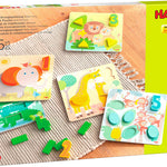 Ordenar colores y formas es una de las primeras fascinaciones de los niños y las niñas. Con el juego de clasificación con motivos de animales de la selva, se aprende a distinguir colores y a contar del 1 al 5 mientras se completan las figuras del elefante, los cocodrilos, los monos o los leones. Las piezas, hechas de madera sostenible de haya con acabado de pintura al agua, no tóxica; tienen tamaños y formas diferentes que se pueden colocar únicamente en los sitios correspondientes. De este modo se fomenta el reconocimiento y la clasificación de colores y formas geométricas, y permite el desarrollo de la motricidad fina y el conteo del 1 al 5.