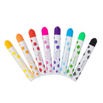 Un juego súper divertido de ocho pinturas de puntos estilo marcador de alta calidad. Diseñado para hacer que la pintura sea fácil y limpia, simplemente gire las tapas y deje que comience la diversión. A los niños les encantará experimentar con los diferentes efectos que se pueden lograr con el aplicador de punta de esponja redonda, desde divertidos puntos punteados hasta difuminados y también amplios barridos de color. La herramienta perfecta para sesiones de arte creativo.