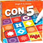 5 dados, 5 turnos de juego: Todos los jugadores buscan simultáneamente formas CON5 en sus tableros de juego y las bordean con el lápiz para ganar puntos.