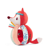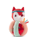 Un original sonajero, para que las manitas puedan agarrarlo fácilmente. Entre las asas se esconde un amiguito.