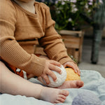 La Bola sensorial hecha a mano es de goma caucho 100% natural de los árboles de Hevea, con pigmentos naturales.