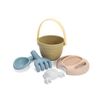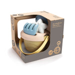 Conjunto de cubo, pala, rastrillo, cedazo y molde fabricado con caña de azúcar.90% de Biobase, 100% reciclable y 100% sostenible.