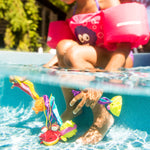 - Los 5 juguetes de piscina cuentan con un agarre fácil; perfecto para pequeños nadadores.
