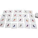 ¡Gira una tarjeta y busca el otro calcetín que coincida con el primero que has girado! Coge el calcetín que creas que es el correcto con la ventosa y si es correcto tienes un punto. Sigue encontrando pares de calcetines hasta ganar. Pero, ten cuidado, ¿el cocodrilo necesita el calcetín izquierdo o el derecho?