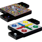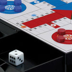 Juega al parchís o a la oca, solo tendrás que colocar el tablero por el lado que elijas y sacar las fichas correspondientes del cajón, incorporado en el tablero.