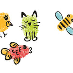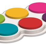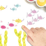 Contiene 6 almohadillas de colores con la tinta para pintar con los dedos lavable al agua.