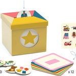 DESCRIPCIÓN -Kioukoi Jouets es un juego de observación y clasificación para agrupar juguetes según un criterio de forma (criterio físico). -Un divertido básico para las primeras experiencias de aprendizaje: separar, clasificar, ordenar. -Piezas de cartón grueso fáciles de agarrar y una ingeniosa caja-hucha para jugar. -Solución en el reverso de cada tarjeta de criterios. -Desarrolla el sentido de la observación. -También disponible sobre el tema de los animales (DJ08145) y los objetos de la casa (DJ08146). Contenido: 12 cartas de criterios y 30 fichas grandes. Caja-hucha para jugar.