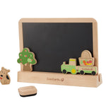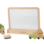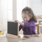 Pizarra pensada para trazar dibujos mediante tiza por un lado y rotulador lavable por el otro. Contiene 3 piezas complementarias con efecto magnético + 1 soporte de madera para mantener la pizarra vertical. Ideal para el desarrollo y la imaginación de los niñ@s en las diversas etapas del aprendizaje.