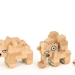 53 fichas de madera + 4 fichas doble cara + hojas de pegatinas + tapete de juego + instrucciones.