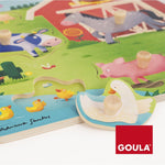 Pon a las mamás con sus bebés con este puzle de 7 piezas de madera ambientados en los animalitos de una granja que tanto les gusta a los niños. Asocia las piezas por su siluete o por sus crías. Los pivotes son pequeños para que les sea un poco mas difícil al niño de encajar y así ayuda al desarrollo de la habilidad manual ojo-mano.