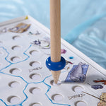 - La caja sirve de tablero de juego, y los osos polares, los cuencos, los dados y las cañas de pescar imantadas están hechos de madera de haya procedente de bosques sostenibles con acabado de pintura al agua, no tóxica.