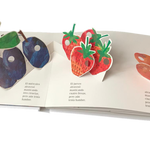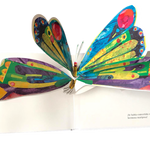La oruga era muy pequeña, pero tenía un hambre enorme. Así que se pasó todo este cuento comiendo, atravesando página tras página. Hasta que finalmente se convirtió, como todas las orugas, en mariposa. Un libro agujereado de verdad por la muy glotona.