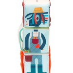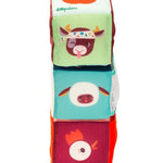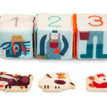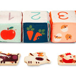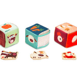 Este juego de granja evolutivo consta de 3 cubos de tela y 3 personajes de madera. Cada lado ofrece un nuevo desafío: montar el burro, aprender a contar o reconocer los números del 1 al 3. Puedes asociar los 3 personajes de madera en un lado y cada uno tiene un escondite. ¡Original y desafiante para las manos y el cerebro!