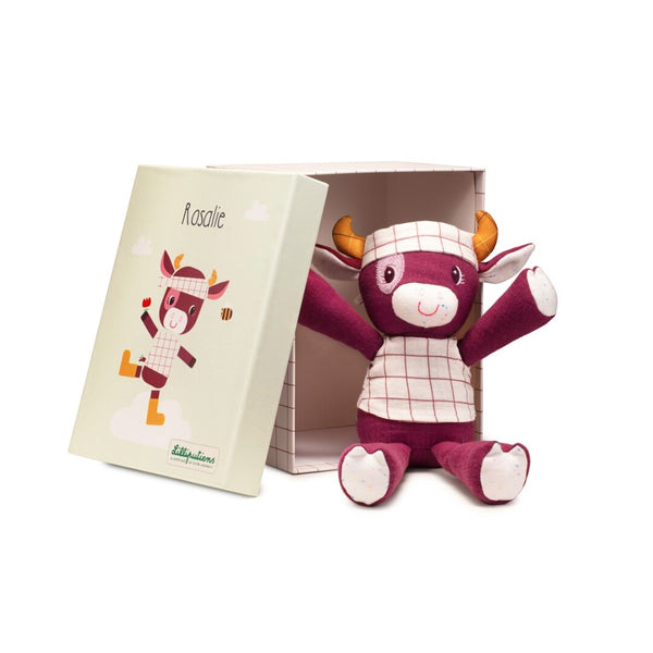 A Rosalie, nuestra indómita vaca, no hay nada que más le guste que abrazar. Se ha confeccionado con algodón orgánico y viene acompañada de una preciosa caja de regalo con bonitas ilustraciones.