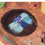 Nuestro manzano en verano acoge a una familia de ardillas, un nido con pájaros, un gato travieso y lechuzas juguetonas. Bajo la tierra se esconden ratoncitos, conejos y topos en sus madrigueras. En invierno ya hemos recogido sus dulces manzanas y descubrimos que hacen nuestros pequeños amigos hasta que llegue el buen tiempo.