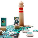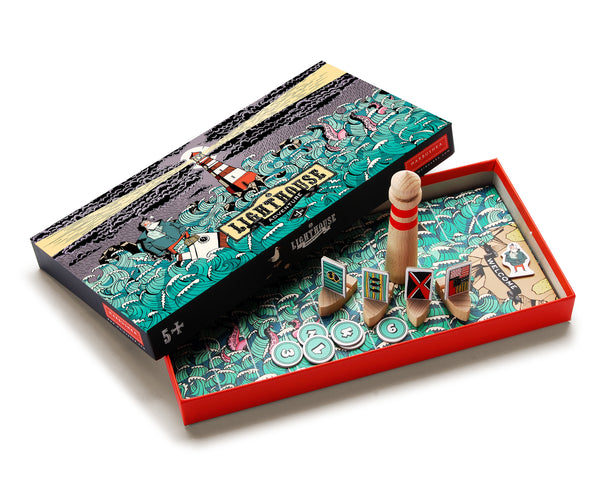 Descripción: El primer jugador da la vuelta a uno de los discos de números, avanzando en la dirección que desee las casillas que indique el número, volviendo a girar el disco sin cambiar su posición. El siguiente jugador realiza la misma acción con el disco que desee, así los jugadores pueden recordar qué número hay en cada disco y poder pensar cual necesitan para abordar el barco con el farero y así ser ellos quienes lo rescaten. Pero ¡cuidado! Cada vez que es rescatado, deberán mezclarse los discos.