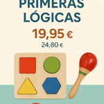 Exploración sensorial, primeras formas y ritmo. Un pack suave para iniciar la lógica y la coordinación desde pequeñitos.