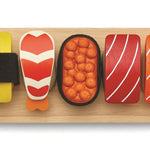 ¡Simula ser un chef de sushi con el Set de Sushi PlanToys! Mientras desarrollan el pensamiento creativo y las habilidades motoras finas, la coordinación mano-ojo y más, los niños pueden servir una cena de sushi para toda la familia. Completo, con huevas de salmón hechas de PlanWood ™, tamago, gambas con cola de goma, atún y salmón. ¡Se pueden envolver 2 hojas de algas alrededor de los trozos de arroz incluidos para un mayor realismo! Una bandeja de sushi, una botella de soja y un plato para salsa agregan aún más dinámica.