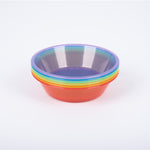 El juego incluye: 6 cuencos en 6 colores (rojo, naranja, amarillo, verde, azul, morado).