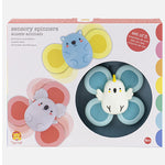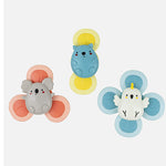 Diseñado para fomentar las habilidades motoras finas, el juego sensorial y el aprendizaje de causa y efecto, el juguete presenta un trío de lindos animales australianos, cada uno con dos, tres o cuatro paletas giratorias. Una fuerte ventosa permite una fácil fijación a cualquier superficie lisa (piense en bañeras, azulejos, sillas altas, espejos, frigoríficos y ventanas de automóviles).