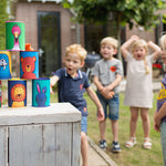 El antiguo juego de tirar la lata ha tenido un cambio de imagen, para que sea aún más divertido tirar y escuchar todas las latas cayendo al suelo!