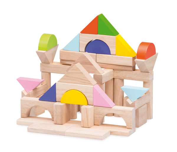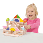 ¡50 piezas para construir todo lo que el niño pueda imaginar! Un juego de toda la vida donde los niños aprenden sobre formas y tamaños construyendo.