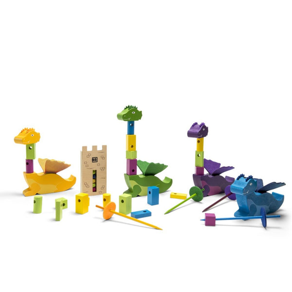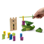 | LÓGICA + 6 años. Coge tu espada, agita la torre para ver el orden de los colores. Ahora, usa tu espada para apilar las piezas del mismo color en tu dragón. Se el primero en colocar la cabeza arriba para ganar. Número de jugadores: 1- 4 Contiene: 4 cabezas de dragón + 4 cuerpos de dragón + 20 piezas. Material: Madera y fieltro. Medida: 27,5 x 27,5 x 6,8 cm. |