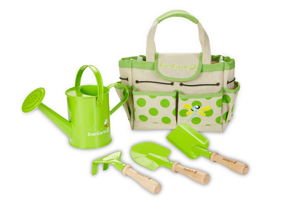 Kit de herramientas de jardinería muy útil para hacer que la naturaleza sea más que una diversión. Contiene: 1 Bolsa de algodón-loneta, 1 regadora, 1 rastrillo y 2 palas hechas de metal con el mango de madera resistente.