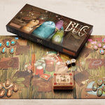 Descripción: En el juego hay dos dados. El primero a lanzar siempre será el dado bicho-lupa: Si aparece un bicho, ¡lo conseguiste! ese bicho habrá llegado directamente a la ciudad; en cambio, si aparece una lupa, será el profesor quien mueva, lanzando el segundo dado y avanza las casillas correspondientes; dependiendo en la casilla en la que caiga, atrapará algún bicho o, bien, se escaparán los ya atrapados en la caja.
