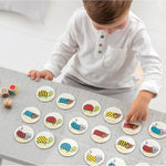 El primer jugador que encuentre la combinación correcta gana la pieza. Si al tirar el dado ya esta cogida la ficha se vuelve a tirar. ¡El niño que obtiene más piezas gana!