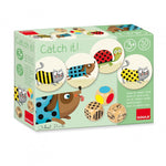 Juego de velocidad visual: Coloca las piezas sobre la mesa y lanza los 3 dados por turnos y encuentra la combinación: animal + vestido + color. ¡Sé el más rápido en encontrar la pieza!