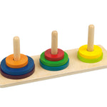 Juego inventado en 1883 por el matemático francés Édouard Lucas. El objetivo del juego es trasladar toda la pila de discos a otro de los postes o varillas, siguiendo unas simples reglas.