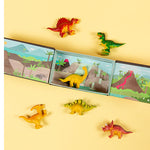 ¡Ahora puedes llevar tus dinosaurios a todas partes! Crea tu propia aventura prehistórica con seis de tus minidinosaurios favoritos, incluidos T-Rex, Stegosaurus, Triceratops, Dimetrodon, Apatosaurus y el increíble Parasaurolophus.