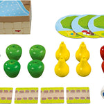Adaptació a edats més primerenques del clàssic joc de HABA, El Frutal. Amb un material de joc d´alta qualitat i amb acabats de tacte molt agradable. La introducció perfecta als jocs amb regles a una edat molt primerenca, alhora que es desenvolupa el llenguatge, el recompte i el reconeixement de colors i formes.
