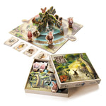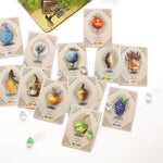 Descripción: Deberemos elaborar las recetas que aparecen en las cartas mediante la combinación de cristales mágicos. Para conseguirlos, viajaremos por el bosque lanzando el dado en el que aparecerá una de tres opciones: un número (puedes mover los espacios que indica el dado), una cabeza melenuda (Morc se mueve un espacio), flecha (desplaza el bosque un espacio)