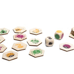 Esconde las fichas de madera con los insectos y lanza los dados.
