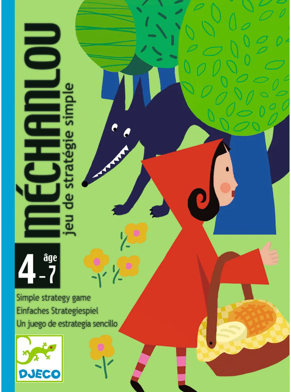 -Un juego de estrategia inspirado en el cuento de Caperucita roja. Los niños disfrutarán encontrando los personajes de esta famosa historia. Gracias a sus propias cartas o a las de otros jugadores, que puede robar con el lobo, un jugador gana la partida cuando es el primero en reunir las 6 cartas que forman el cuento. -Durante el juego, los jugadores pueden cantar la canción «Caminemos por el bosque...» -Ilustraciones inspiradas en el cuento. -Una caja compacta, que se puede llevar a todas partes. -Cartas de calidad y resistentes. Contenido: 50 cartas (34 cartas + 16 arbustos). Reglas del juego en 10 idiomas.