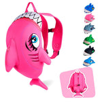 Mochila de Tiburón Rosa para guardería o preescolar para niños de 2 a 6 años. Diseño de Crazy Safety. Neopreno de calidad con etiqueta para el nombre