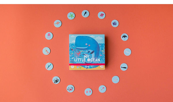 Un puzzle de 24 piezas para explorar las profundidades marinas con un juego de observación y en versión de bolsillo para que puedas disfrutarlo en cualquier lugar!