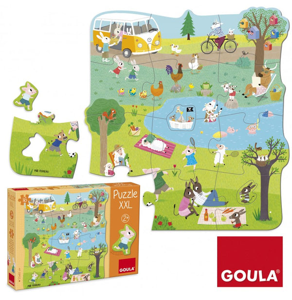 Diviértete con este Puzle de 16 piezas gigantes inspirado en un ambiente para pasar un día en el campo de una manera divertida con diferentes animales y acciones. Imitación al mundo real. Para niños pequeños. Medida del puzle montado 55x60 cm Desarrolla la habilidad manual y la coordinación ojo/mano