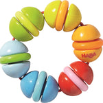HABA Sonajero Sonante. Este robusto sonajero de madera fascina a los bebés gracias a sus aros de alegres colores, que, al agitarlo, producen sonidos divertidos.